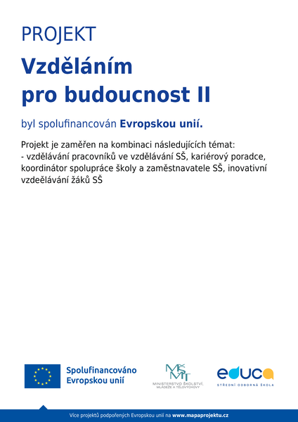 Naše škola se se svým projektem VZDĚLÁNÍM PRO BUDOUCNOST II účastní dalšího kola operačního programu Jan Amos Komenský.